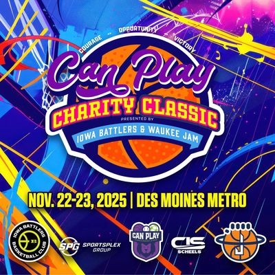 Hoop for a good cause! The 2025 Version of the Can Play Charity Classic goes down November 22-23 in the Des Moines Metro! This will be a 2-day tournament, boys & girls, grades 2-8, club & school teams welcome.